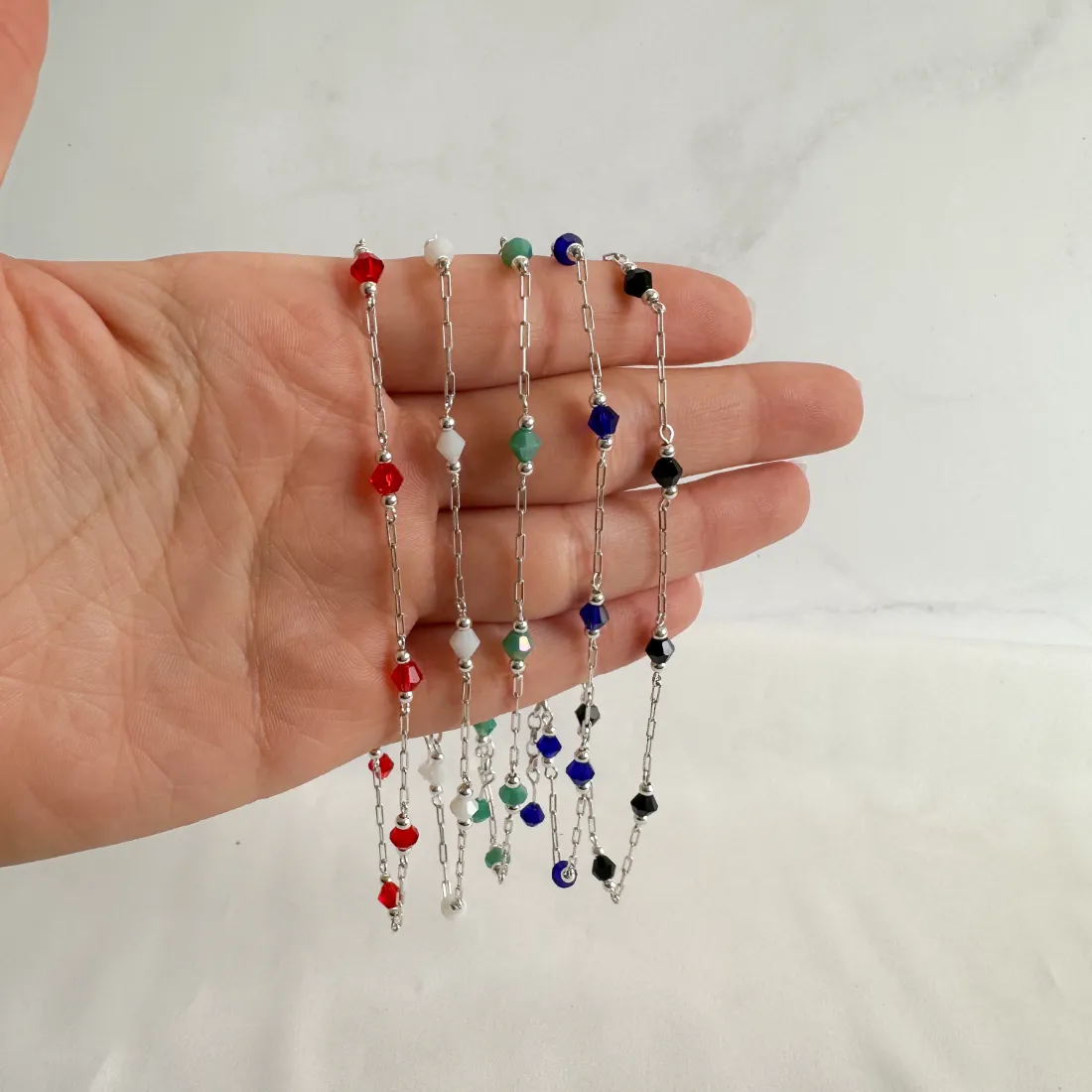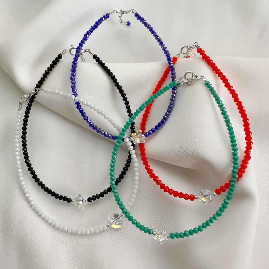 TOBILLERA TANZA CRISTALES Y BOLITA DE PLATA