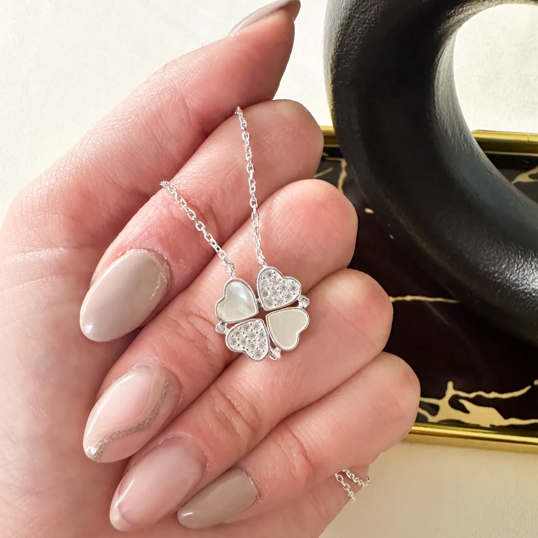 GARGANTILLA TRÉBOL ARTICULADA CON NÁCAR