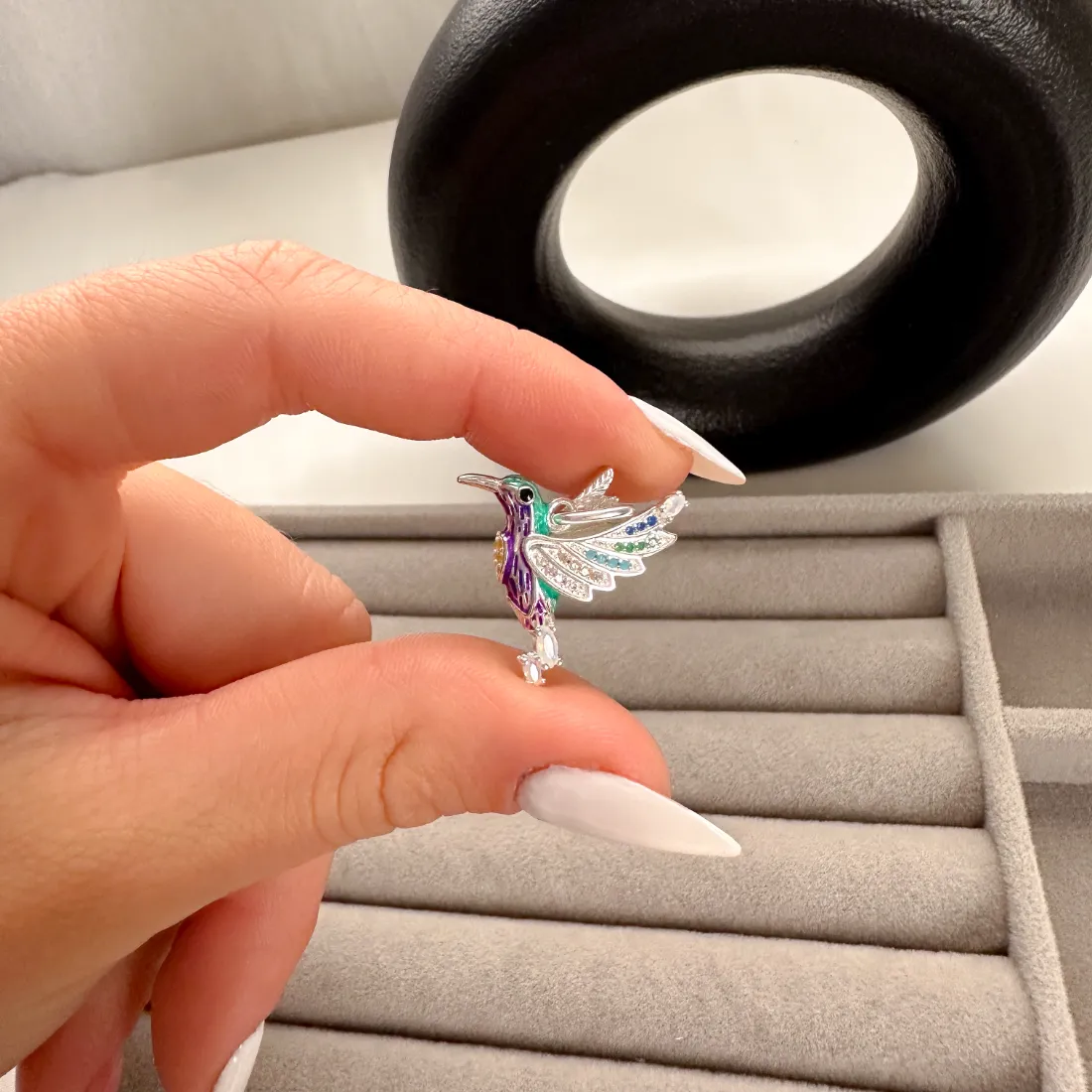 DIJE COLIBRÍ ESMALTADO Y CON CUBIC