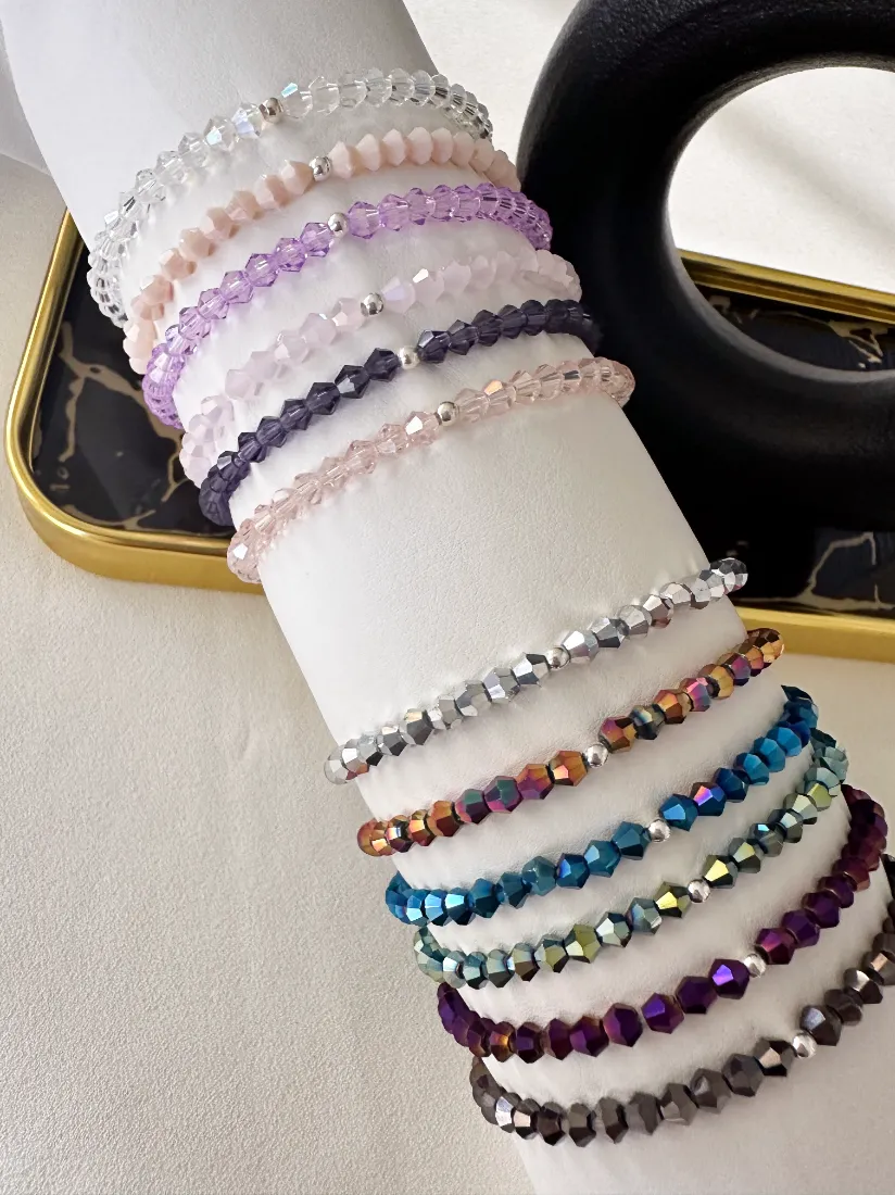 PULSERA ELASTIZADA CON 4MM CRISTAL CON BOLITA DE PLATA